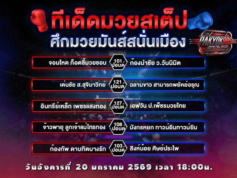 ทีเด็ดมวยสเต็ป มวยมันส์สนั่นเมือง 20 มกราคม 2569