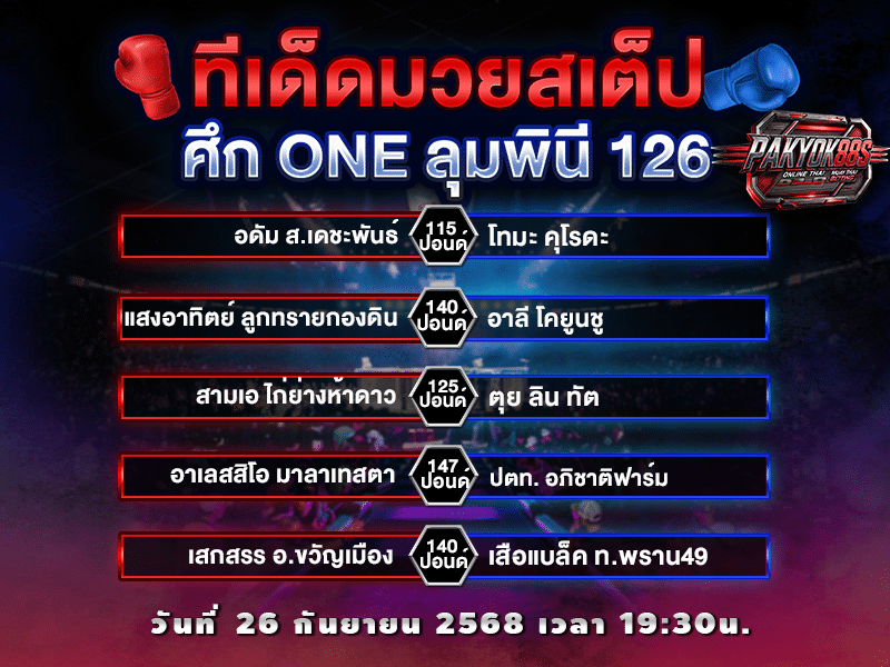 ทีเด็ดมวยสเต็ป วิเคราะห์มวย ศึก ONE ลุมพินี 126